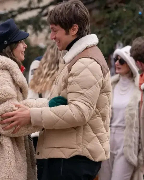 Lucas Bravo Emily in Paris Season 4 Part 2 Gabriel Beige Quilted Shearling Jacket